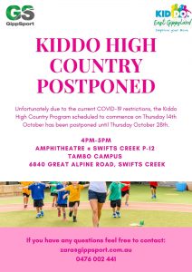 Unfortunately due to the current COVID-19 restrictions, the Kiddo High Country Program scheduled to commence on Thursday 14th October has...